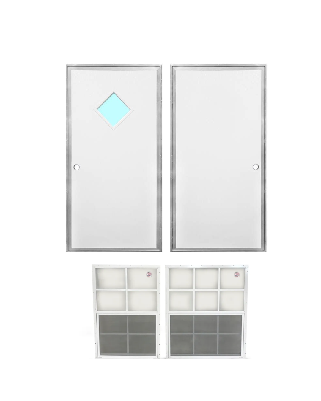 Need easy access and extra light for your steel building? We offer 36"x80" walk-in doors—choose between a plain design or one with a diamond window for added style.